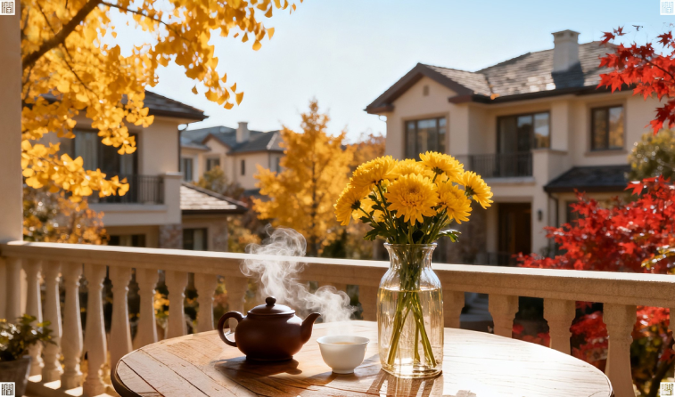 品韵 芳菊盈庭,清雅宜人 幽香暗度,丝丝秋意润轩窗 煮茗听松,澹澹闲心随云远 佳节涵韵,高士清欢 静享风雅悠长